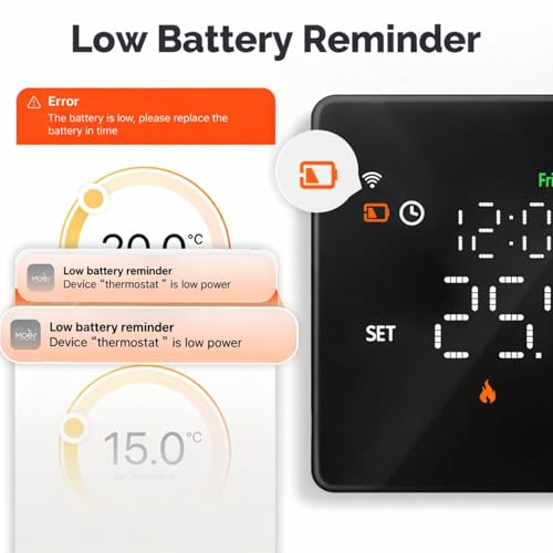 Termostato WiFi 503 a Batteria Nero, Per Caldaia a Gas, Montaggio Parete