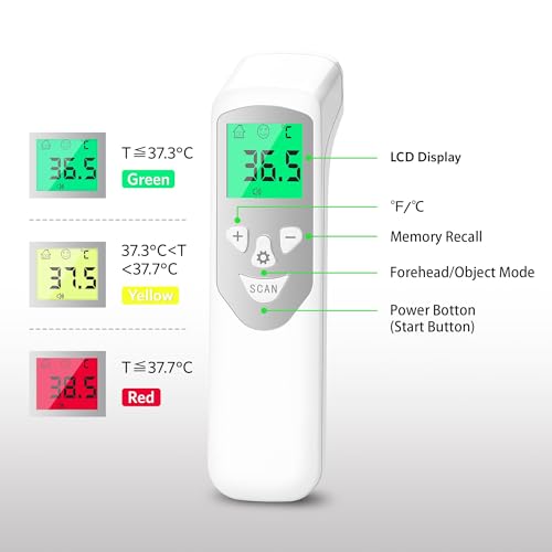 BESTEK Termometro Febbre,Termometro Infrarossi Senza Contatto per Adulti e Bambini,Termometro Neonato Frontale Digitale con Lettura Istantanea (1s) | Richiamo Memoria | Display LCD Ottimizzato
