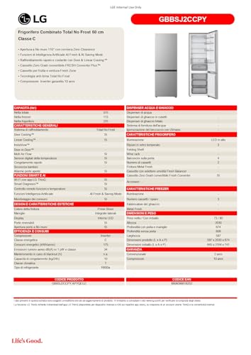 LG GBBSJ2CCPY Frigorifero Combinato Total No Frost 60 cm Classe C