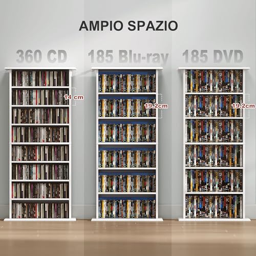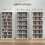 HOMCOM Mobile Porta CD con 6 Ripiani Regolabili per 360 CD/185 DVD Bianco