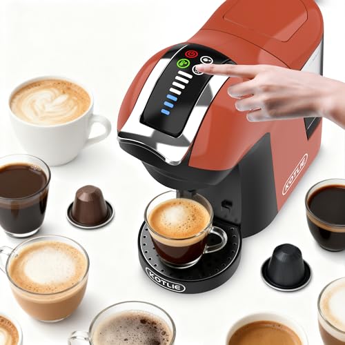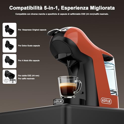 Macchina da caffè a capsule, per Nespresso, per Dolce Gusto, per A Modo Mio, caffè in polvere (44 mm) e caffè macinato. Tre impostazioni di temperatura e sette regolazioni del volume dell'acqua