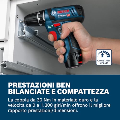 Bosch Trapano avvitatore a batteria Bosch GSR 10.8-2-Li Professional con 2 batterie da 2,0 Ah, caricabatterie e 39 accessori in borsa