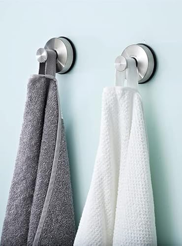 JOMOLA Ganci Ventosa Portasciugamani con Ventosa Forte Resistenti Appendi Accappatoio Bagno per Doccia Cucina Porta Asciugamani da Muro Piastrelle Vetro, 2 Pezzi, in Acciaio Inox Argento
