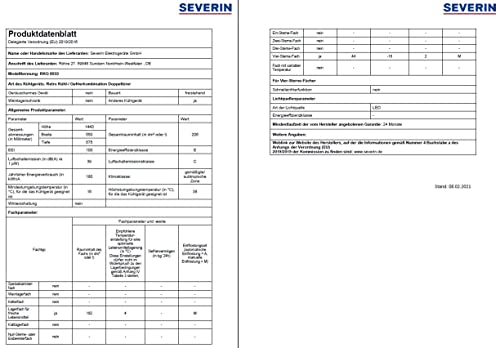 SEVERIN RKG 8933, FRIGORIFERO COMBINATO, Classe E