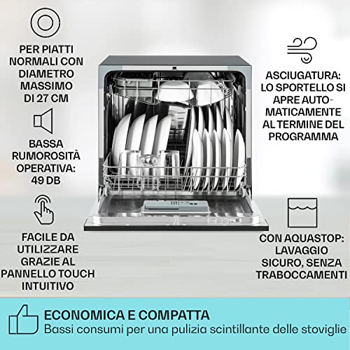 Klarstein Lavastoviglie 8 Coperti, Libera Installazione Silenziosa con 6 Programmi di Lavaggio, Mini Lavastoviglie Piccola, Mini da Tavolo Compatta e Facile da Installare