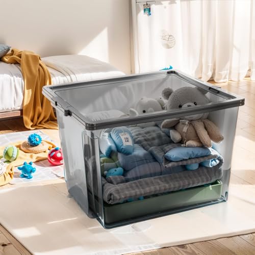 IRIS OHYAMA Scatole Portaoggetti, 30l, Set Di 6, Grigio, Chiusura Facile, Impilabile, Plastica Trasparente, Per Armadio, Scaffali, Organizzazione, Vestiti, Coperte, Forniture Per Garage, Usb-m -