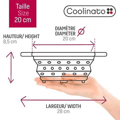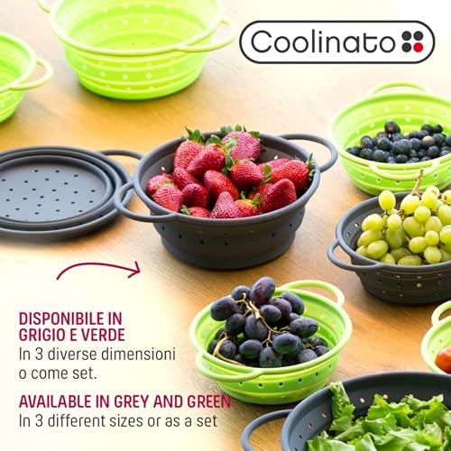 Coolinato – Scolapasta silicone pieghevole 20 cm grigio – Colino per pasta, verdura e frutta - Colapasta per lavastoviglie, senza BPA e termoresistente fino a 230°C - Setaccio salvaspazio richiudibile