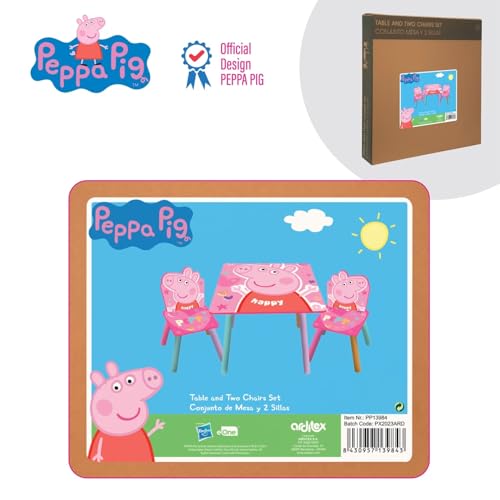 ARDITEX - Set Tavolo e 2 Sedie in Legno per Bambini Licenza Ufficiale Peppa Pig - Tavolo 50x50x44 cm/Sedia 26,5x26,5x50 cm - Rosa Arcobaleno - Ideale per giocare, disegnare e fare lavoretti