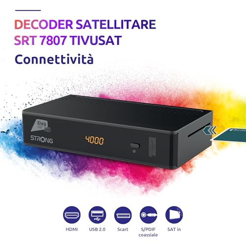 STRONG - Decoder Satellitare SRT7807TIVU - Tivùsat HD con Scheda Tivùsat Inclusa, Funzioni Smart - Tanta TV in HD - Facile da Usare - Nero