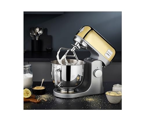 Kenwood kMix Editions KMX760AYG, Planetraria con Ciotola 5L in Acciaio Inossidabile, Impastatrice con Sistema di Sicurezza, Scocca Metallo, Inclusi Set Pasticceria 3 Pezzi e Paraschizzi, 1000W, Oro