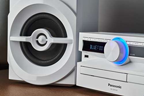 Panasonic SC-UX102E-W Sistema Stereo Mini, 300 W, Speaker a 2 Vie, Woofer da 13 cm, Ideale per Feste, Lettore CD, CD-R/R W, Riproduzione Wireless Bluetooth, USB, DAB/DAB+, Bianco