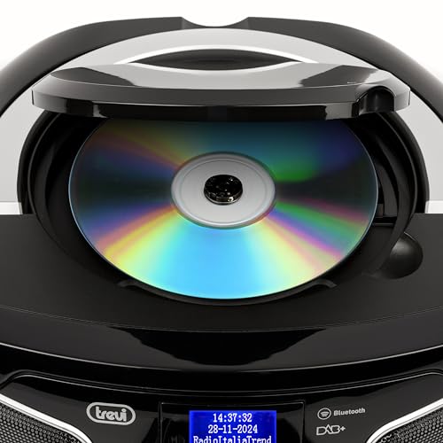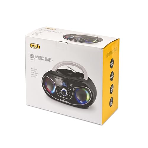 Trevi CMP 588 DAB Stereo Portatile Wireless con Radio Digitale DAB e FM, Boombox con Lettore CD, USB, AUX-IN, Antenna Telescopica, Display ad Alta LeggibilitĂ , Alimentazione a Corrente e Batterie