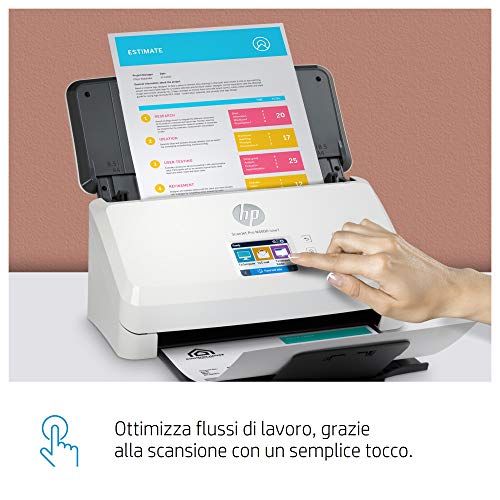 HP ScanJet PRO N4000 snw1 6FW08A, Scansione Fronte e Retro in Un Solo Passaggio, 40 ppm e 80 ipm, Wi-Fi, Wi-Fi Direct, Ethernet, Smart, Scan, Compatto, Piccolo e Sottile, Bianco