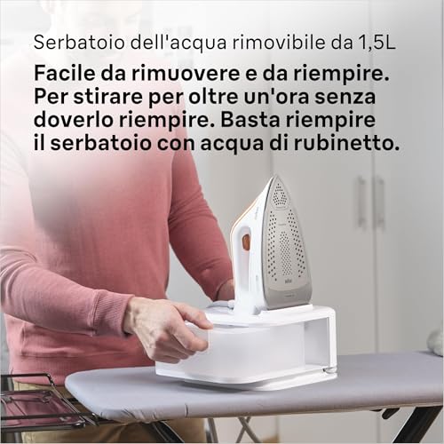 Braun CareStyle Compact Pro IS2561WH Ferro da Stiro, Generatore di Vapore con Tecnologia FreeGlide 3D, Autospegnimento, Riscaldamento Rapido, Vapore 400 g/min, Serbatoio 1.5L, 2400W, Bianco/Arancione