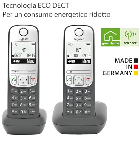 Gigaset AS485 Duo - Due Telefoni Cordless - Vivavoce - Trasferimento di chiamata - Tastiera Illuminata - Chiamate interne tra i due portatili, Grigio Antracite [Versione Italiana]