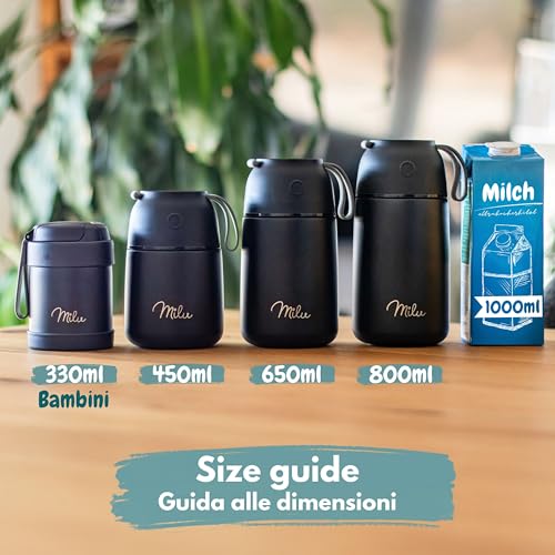 Milu Thermo per Alimenti 300ml 440ml 450ml 650ml 800ml I Contenitore Termico di Acciaio Inossidabile, Isotermico Sottovuoto per Cibi Caldi e Freddi (Nero, 650ml)