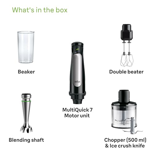 Braun MultiQuick 7 - Frullatore a Immersione con Tecnologia SplashControl, ActiveBlade, Selezione di Velocità Precisa, Tritatutto 500 mL, Doppia Frusta, Bicchiere 600 mL, 1000W, Nero (MQ7035XBI)