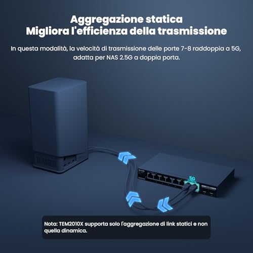 Tenda Switch Ethernet 2.5 Gigabit 8 Porte con 2 Porte SFP+ 10 G (VLAN, aggregazione statica, unmanaged, plug and play, montaggio desktop o a parete, metallo) (TEM2010X)