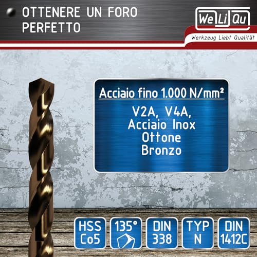 WeLiQu® Set di punte elicoidali per trapano HSS-E M35 Cobalt 25 pezzi passo d...
