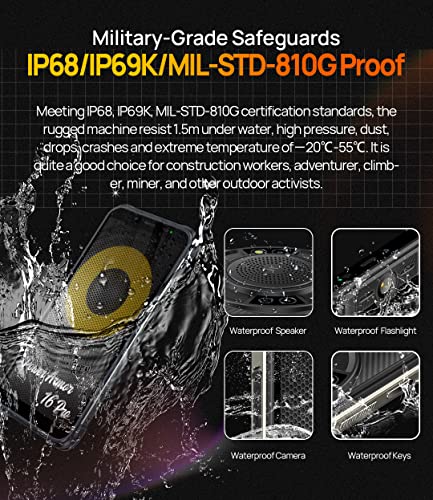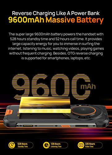 IP68/IP69K, MIL-STD-810G Impermeabile, Antiurto, Antipolvere 30 Minuti 1,5 M Water Deep, 360 All Protection Design, 1,2 metri anti-caduta br/ Batteria da 9600 mAh, supporta la ricarica inversa OTG chiamate 52 ore, standby 528 ore br/ Altoparlante più potente di qualità HiFi, potenza di picco di 3,5 W e volume massimo di 122 dB br/ , Doppia fotocamera posteriore Samsung da 16 MP, modalità fotocamera subacquea supportata, fotocamera frontale da 5 MP br/ 4 GB di RAM + 64 GB di ROM, 512 GB espandibili br/ Schermo intero da 5,93 pollici 720 x 1440 HD+ br/ , Sistema operativo Android 12, NFC+Google Pay br/ Sblocco facciale + Impronta digitale br/ Slot per 3 schede, DUAL SIM + scheda SD esterna, doppio supporto 4G VoLTE br/ , Tasto personalizzato, jack per auricolari da 3,5 mm, radio FM senza cuffie br/ GPS, Glonass, Galileo, BeiDou br/ WIFI, Bluetooth, GPS br/ , Torcia antiriflesso integrata torcia a un tasto, 125 lumen br/ Connettore di espansione uSmart br/ Processore Octa-Core Helio G25 2.0GHz br/