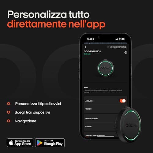 Ooono Co-Driver NO2 modello ottimizzato per auto, alert per autovelox e pericoli