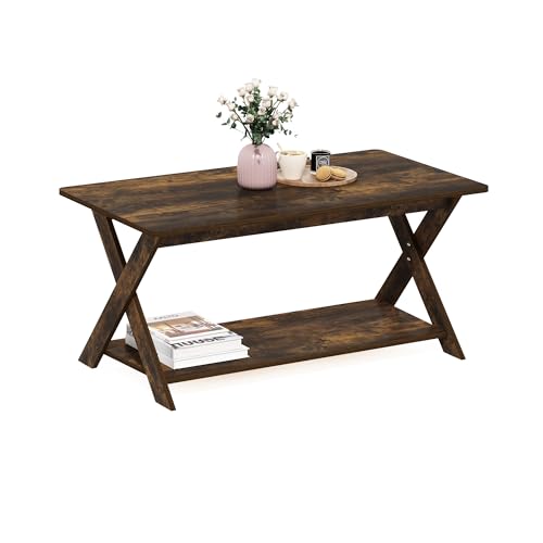 Furinno MODERN SIMPLISTIC Tavolino da caffè, tavolino da caffè moderno rettangolare con gambe a X, tavolino laterale incrociato, per soggiorno, camera da letto, ufficio di casa, Pino ambrato
