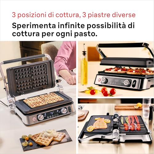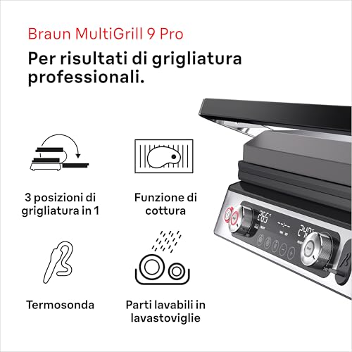 Braun MultiGrill9 CG9167 Griglia Elettrica a Controllo Elettronico, 2 Termostati Indipendenti, 3 Posizioni Cottura, Termosonda, Funzione BOOST, in Dotazione 1 Set Piastre Griglie+Liscie+Waffle, 2200W