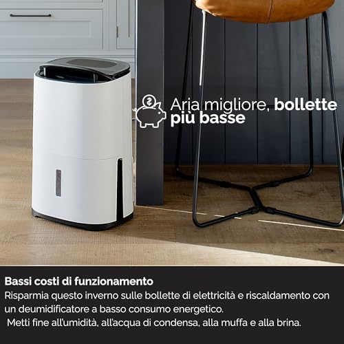 MEACO Deumidificatore silenzioso ed economico con purificatore daria Meaco Dry Arete Two 10L Wifi