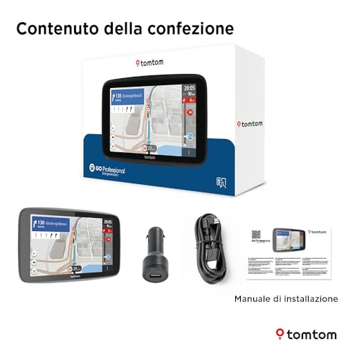 TomTom Navigatore per camion e bus GO Professional - 2a gen. (Touchscreen capacitivo da 5", mappe europee e info sul traffico in tempo reale. Progettato per camion e veicoli di grandi dimensioni)