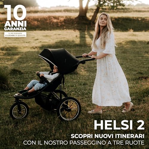 Kinderkraft HELSI 2 Passeggino leggero 3 ruote, dalla nascita fino 27 kg, con Maniglione del genitore regolabile, Posizione sdraietta, Grande ruote gonfiabili, Cestello portaoggetti, Nero