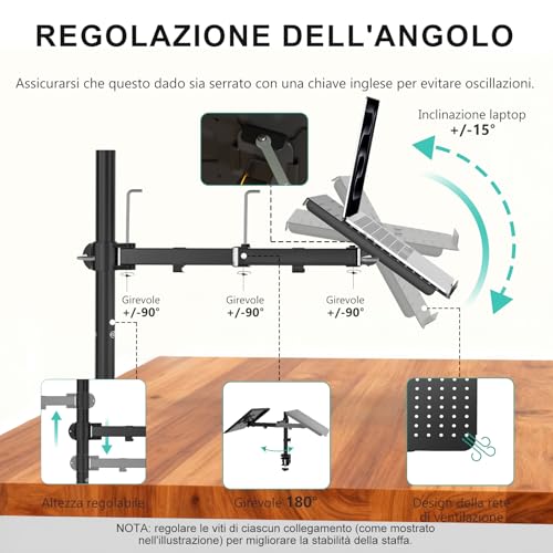 WALI Supporto da scrivania per 1 laptop fino a 17 pollici, completamente regolab