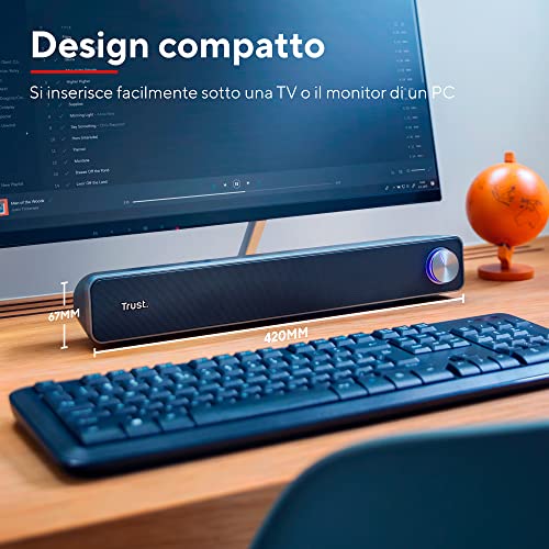Trust Arys Soundbar PC, 12 W, Casse PC, Alimentazione USB, Jack 3,5 mm, Barra Audio, Altoparlanti per Computer, Portatile, TV, Tablet, Smartphone, Nero, 42 x 6.4 x 7.5 cm
