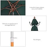 Outsunny Ombrellone da Giardino Inclinabile 2x1.5m, 6 Stecche, Palo in Legno e Apertura a Corda, Verde|Aosom